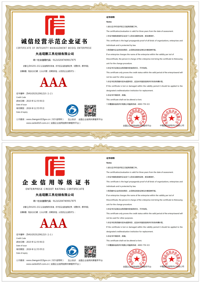 | 企业名称:大连琨鹏工具经销有限公司 | 统一社会信用代码:912102047409017875 |