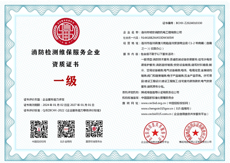 | 企业名称:连州市城安消防机电工程有限公司 | 统一社会信用代码:91441882MA53DW365W |