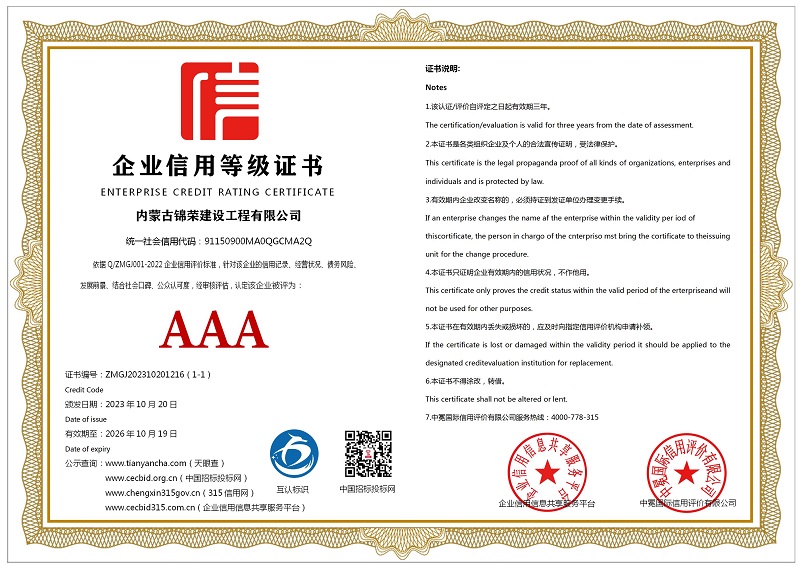 | 企业名称:内蒙古锦荣建设工程有限公司 | 统一社会信用代码:91150900MA0QGCMA2Q |