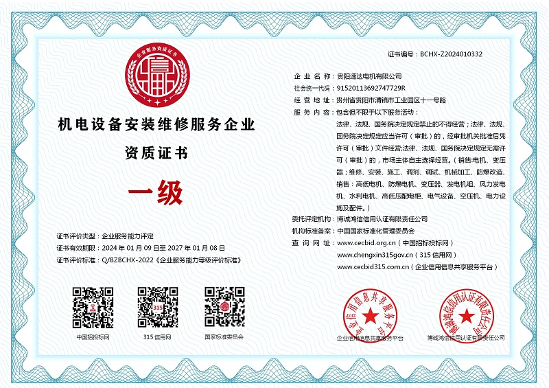| 企业名称:贵阳速达电机有限公司 | 统一社会信用代码:91520113692747729R |