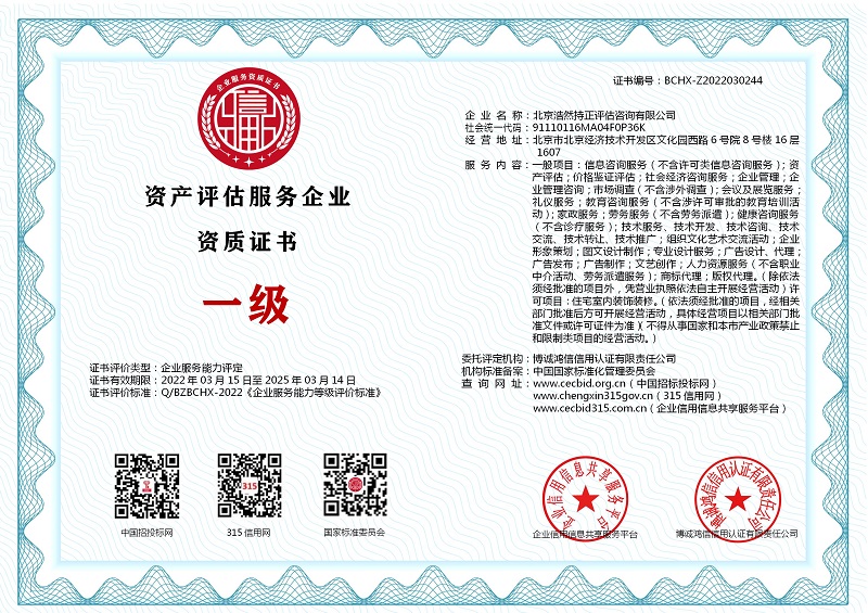 | 企业名称:北京浩然持正评估咨询有限公司 | 统一社会信用代码:91110116MA04F0P36K |