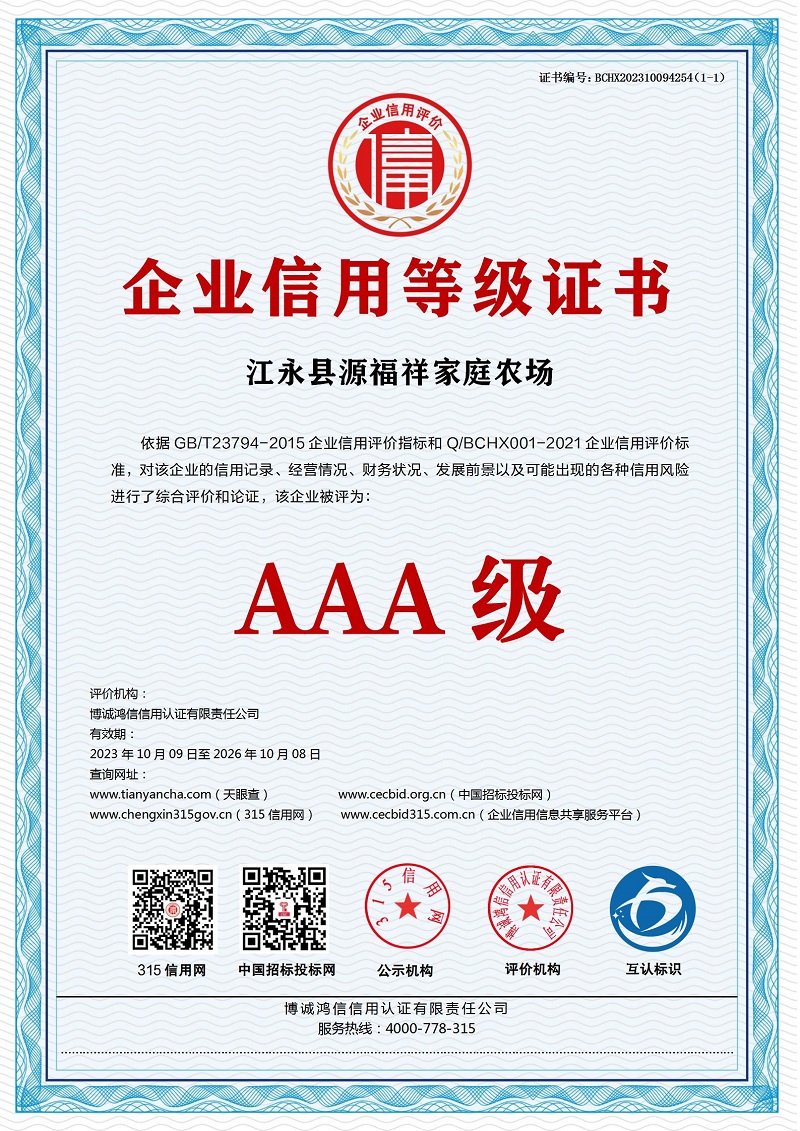 | 企业名称:江永县源福祥家庭农场 | 统一社会信用代码:91431125MABQAH5L5H |