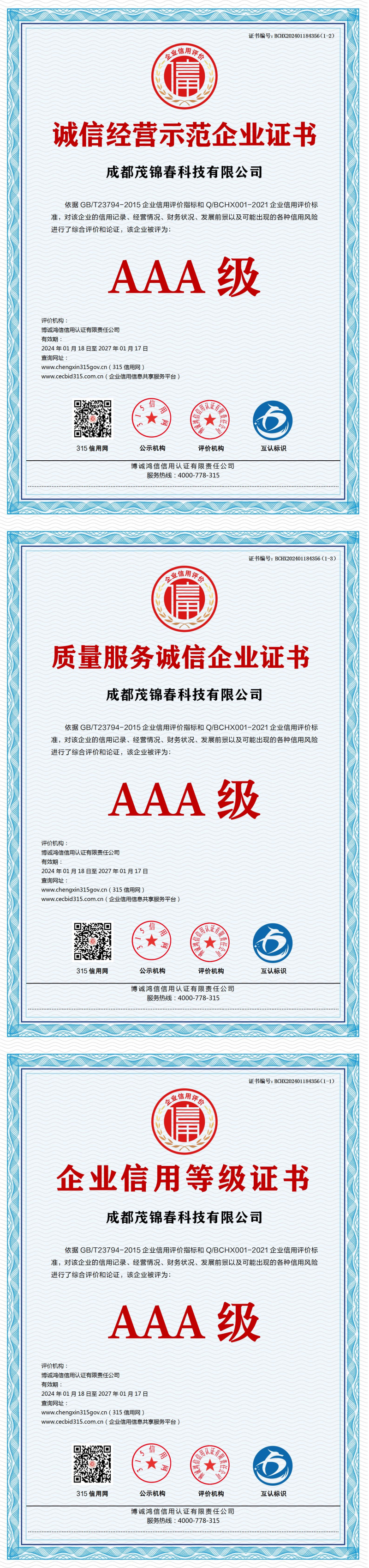 | 企业名称:成都茂锦春科技有限公司 | 统一社会信用代码:92510104MAC4G5BX3J |
