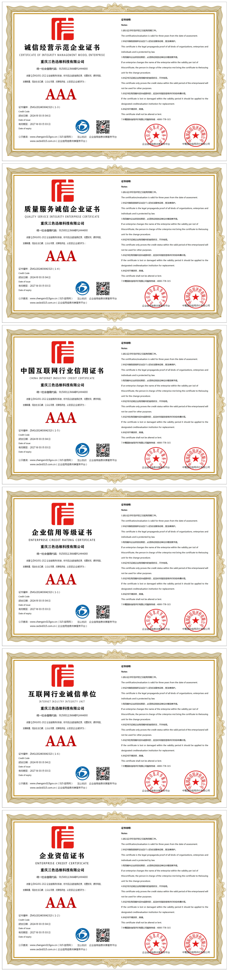 | 企业名称:重庆三色迅维科技有限公司 | 统一社会信用代码:91500113MABYLHH4XX |