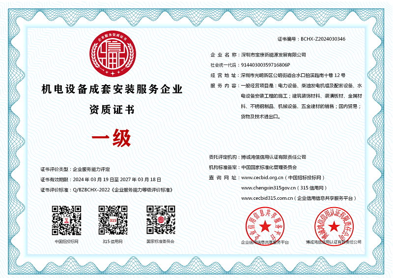| 企业名称:深圳市宝康新能源发展有限公司 | 统一社会信用代码:91440300359716806P |