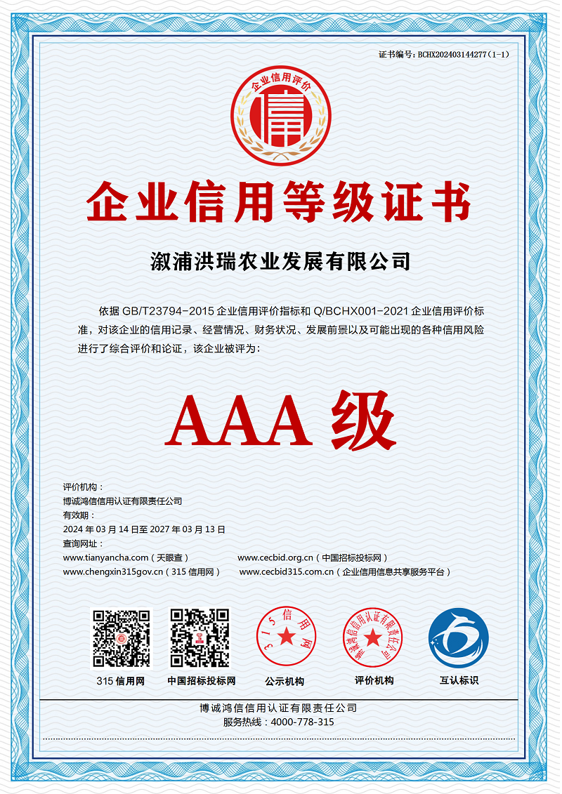 | 企业名称:溆浦洪瑞农业发展有限公司 | 统一社会信用代码:91431224MABLQ0EG8P |