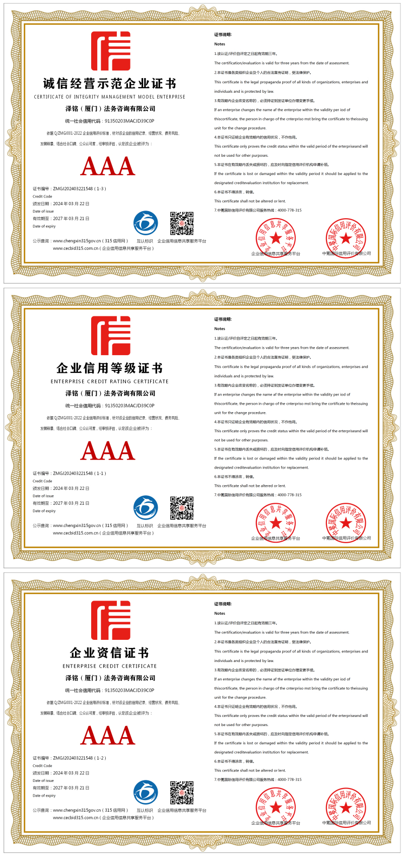 | 企业名称:泽铭(厦门)法务咨询有限公司 | 统一社会信用代码:91350203MACJD39C0P |