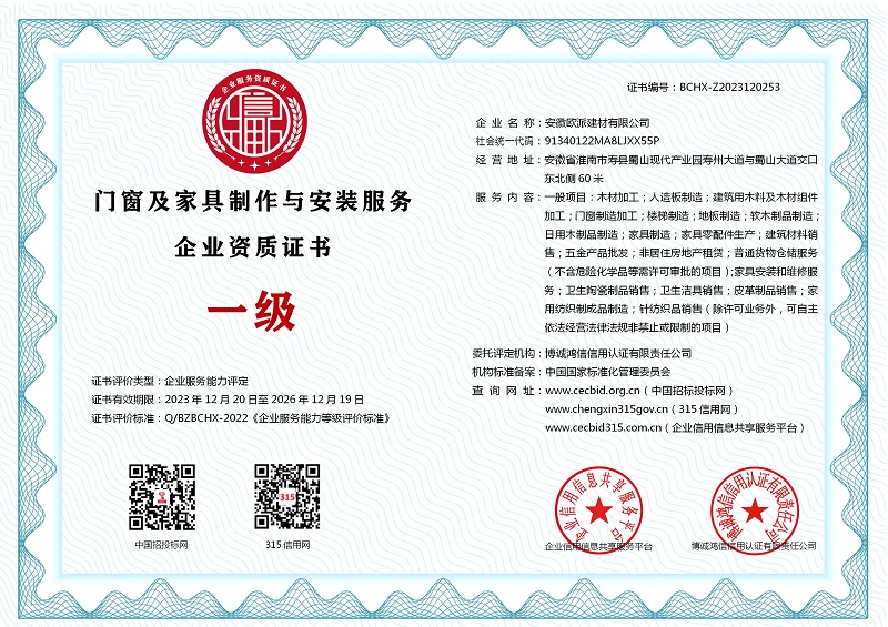 | 企业名称:安徽欧派建材有限公司 | 统一社会信用代码:91340122MA8LJXX55P |