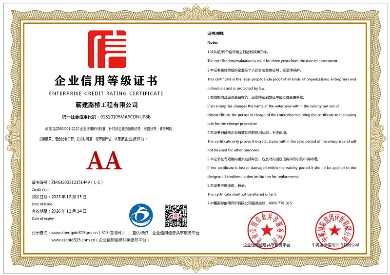 | 企业名称:蕲建路桥工程有限公司 | 统一社会信用代码:91510105MA6CDNUP8B |