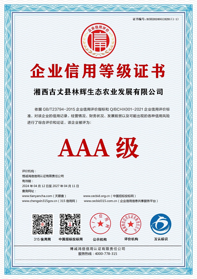 | 企业名称:湘西古丈县林辉生态农业发展有限公司 | 统一社会信用代码:91433126MABUFKRH1P |