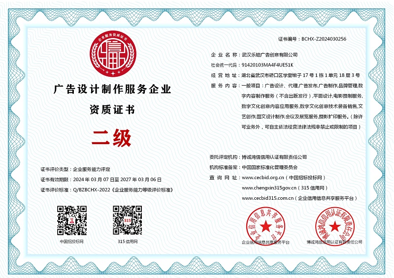 | 企业名称:武汉乐铂广告创意有限公司 | 统一社会信用代码:91420103MA4F4UE51K |