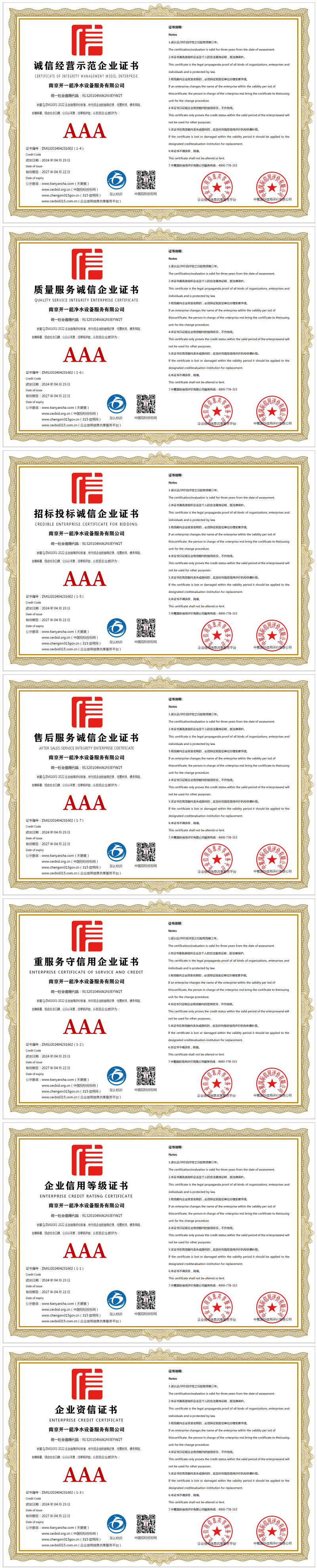 | 企业名称:南京开一能净水设备服务有限公司 | 统一社会信用代码:91320104MA1N3EYW2T |