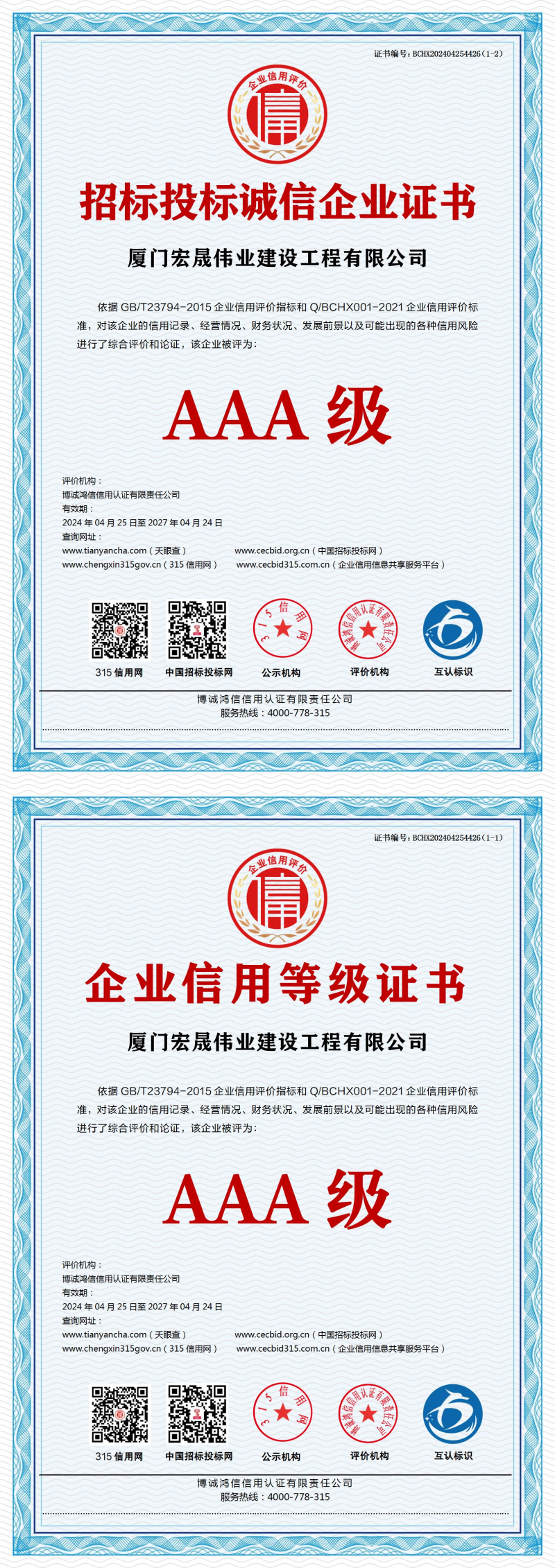 | 企业名称:厦门宏晟伟业建设工程有限公司 | 统一社会信用代码:91350206MAC56G5B1L |