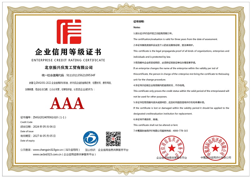 | 企业名称:北京振兴庆发工贸有限公司 | 统一社会信用代码:91110113562109534F |