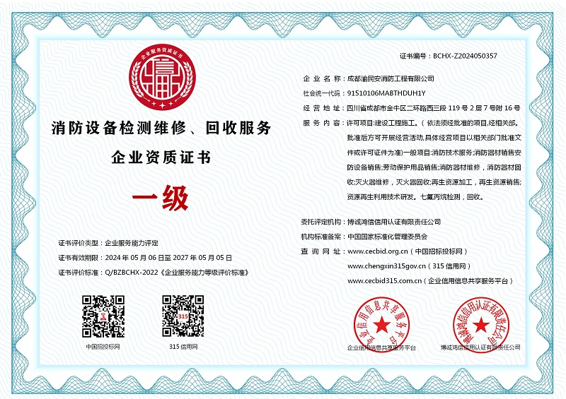 | 企业名称:成都渝民安消防工程有限公司 | 统一社会信用代码:91510106MABTHDUH1Y |