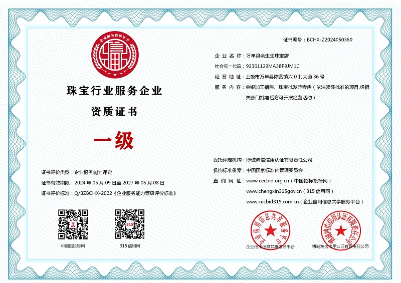 万年县余生生珠宝店成立于2019-07-05,经营者为王万洲,注册资本为10万元人民币,统一社会信用代码为92361129MA38P9JM1C,企业地址位于上饶市万年县陈营镇六0北大道36号,所属行业为文教、工美、体育和娱乐用品制造业,经营范围包含:金银加工销售、珠宝批发兼零售(依法须经批准的项目,经相关部门批准后方可开展经营活动)。万年县余生生珠宝店目前的经营状态为开业。