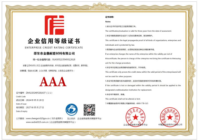 | 企业名称:邵东市金鼎耐磨材料有限公司 | 统一社会信用代码:914305215549312618 |