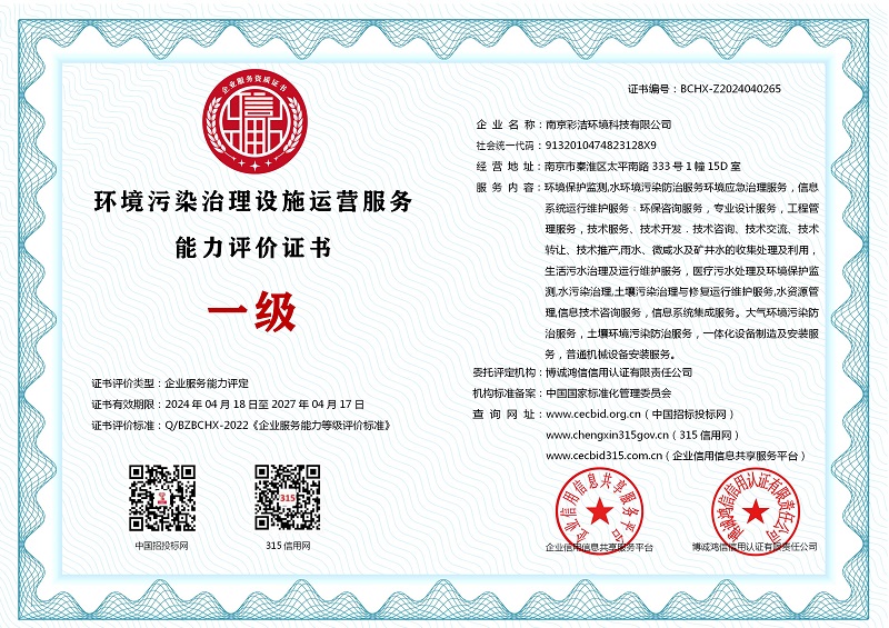 | 企业名称:南京彩洁环境科技有限公司 | 统一社会信用代码:9132010474823128X9 |