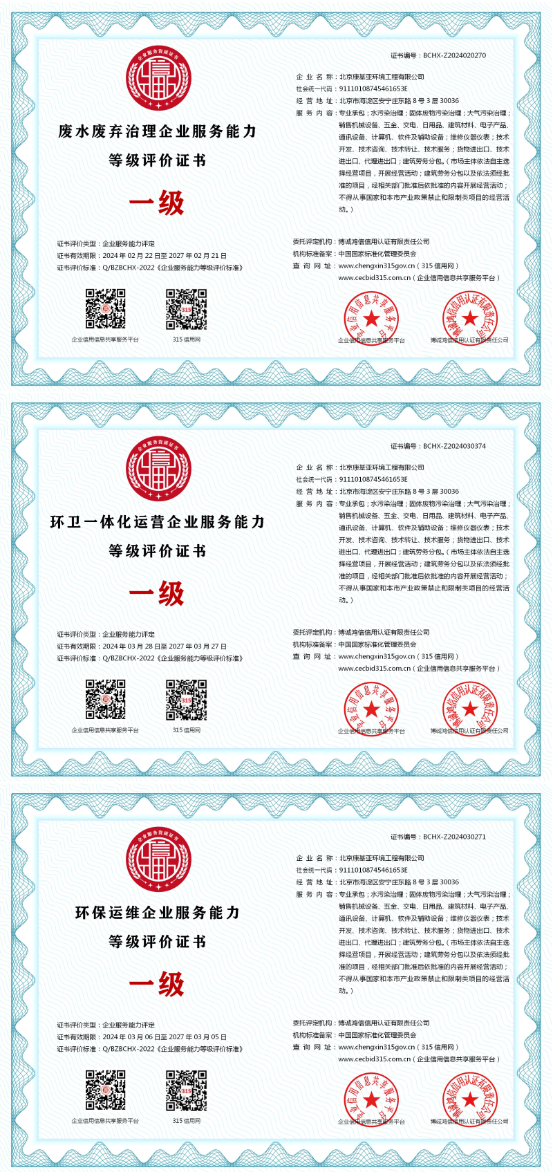 | 企业名称:北京康基亚环境工程有限公司 | 统一社会信用代码:91110108745461653E |
