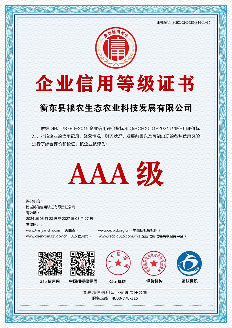 | 企业名称:衡东县粮农生态农业科技发展有限公司 | 统一社会信用代码:91430424MABXDNFY4E |