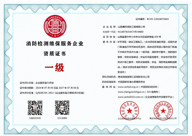 | 企业名称:山西鼎历消防工程有限公司 | 统一社会信用代码:91140781MA7XRX488D |