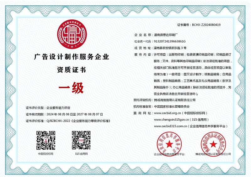 | 企业名称:灌南县泰达印刷厂 | 统一社会信用代码:91320724139663861G |