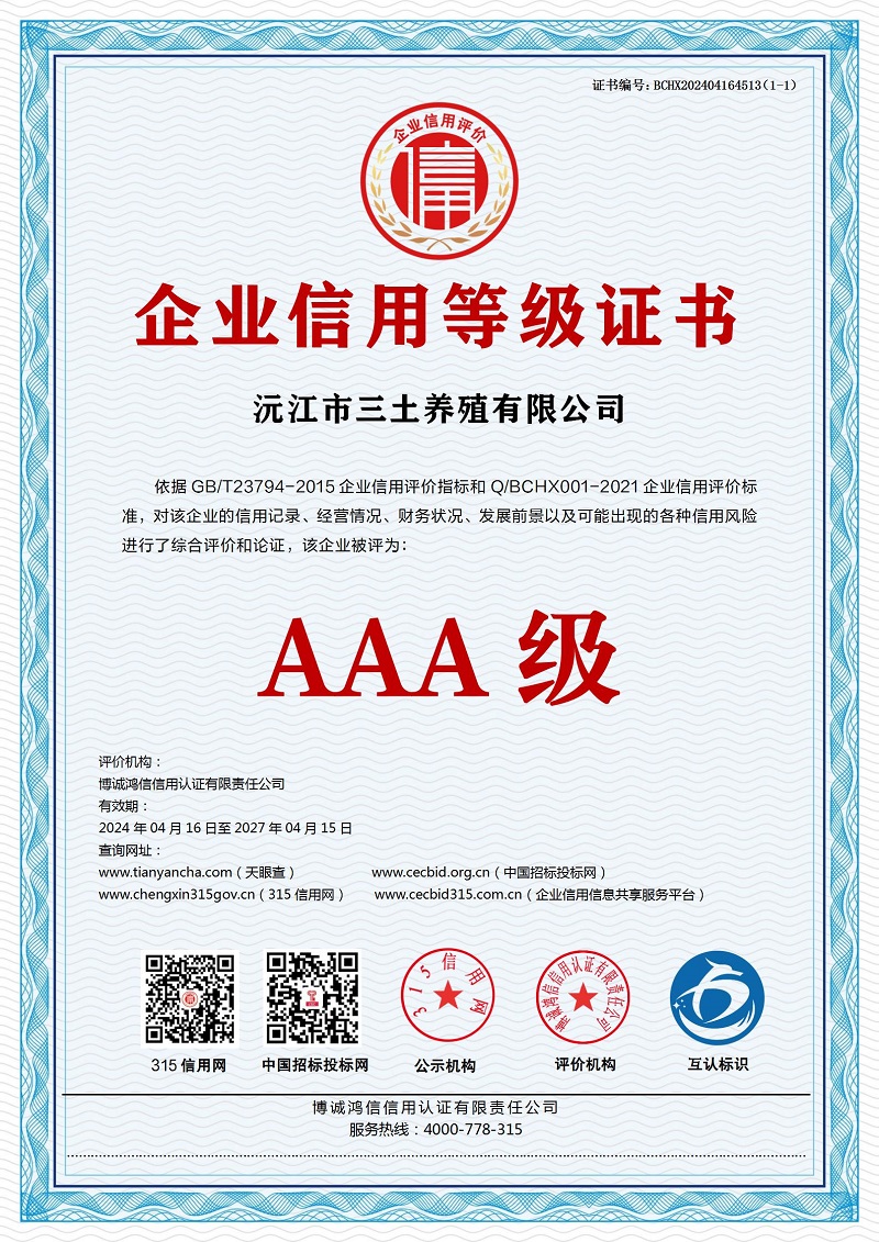 | 企业名称:沅江市三土养殖有限公司 | 统一社会信用代码:91430981MAC2QDHY4R |