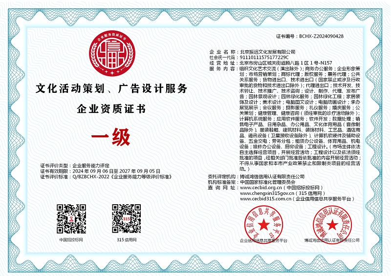 | 企业名称:北京振远文化发展有限公司 | 统一社会信用代码:91110111575177229C |