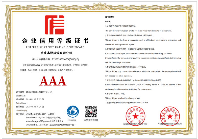 | 企业名称:重庆本熙建设有限公司 | 统一社会信用代码:91500108MA60QDWQ1Q |
