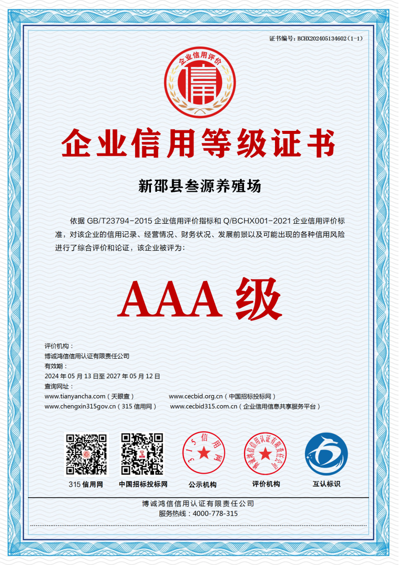 | 企业名称:新邵县叁源养殖场 | 统一社会信用代码:91430522MABW2QC71B |