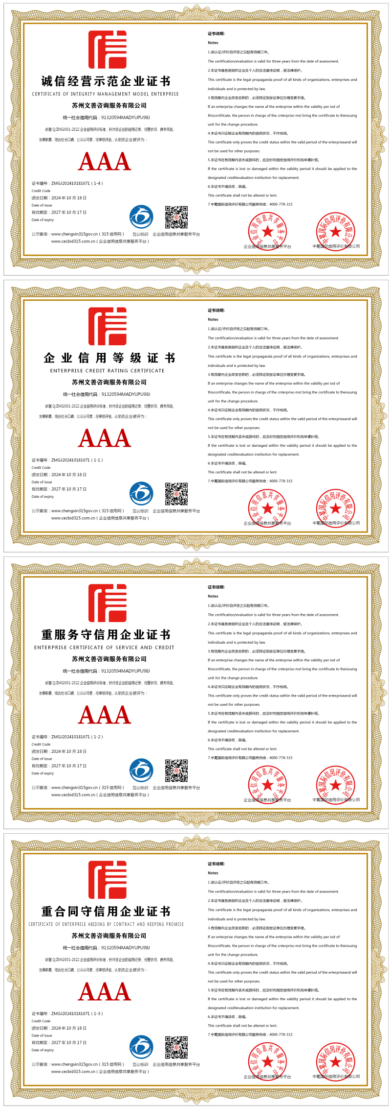 | 企业名称:苏州文善咨询服务有限公司 | 统一社会信用代码:91320594MADYUPU98J |