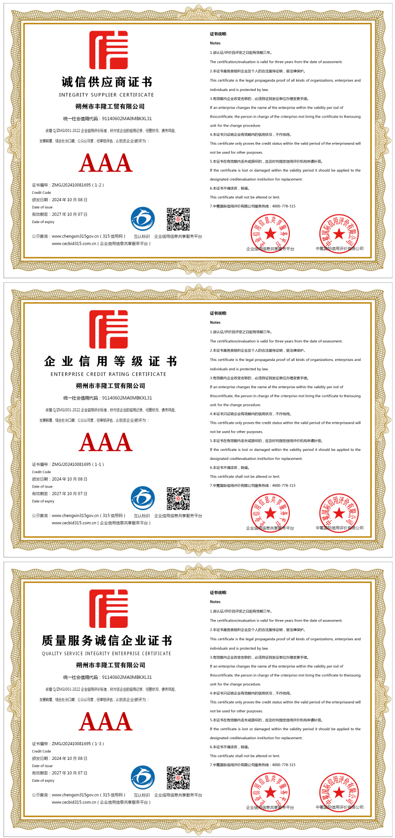 | 企业名称:朔州市丰隆工贸有限公司 | 统一社会信用代码:91140602MA0MBKXL31 |