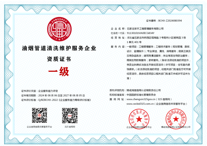 | 企业名称:石家庄泉天工程管理服务有限公司 | 统一社会信用代码:91130101MA0ECG834Y |