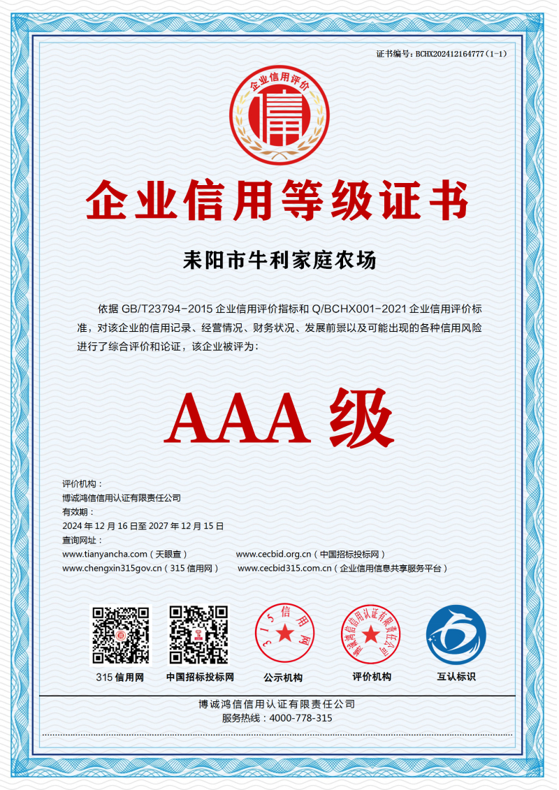 | 企业名称:耒阳市牛利家庭农场 | 统一社会信用代码:91430481MACE52NA2X |