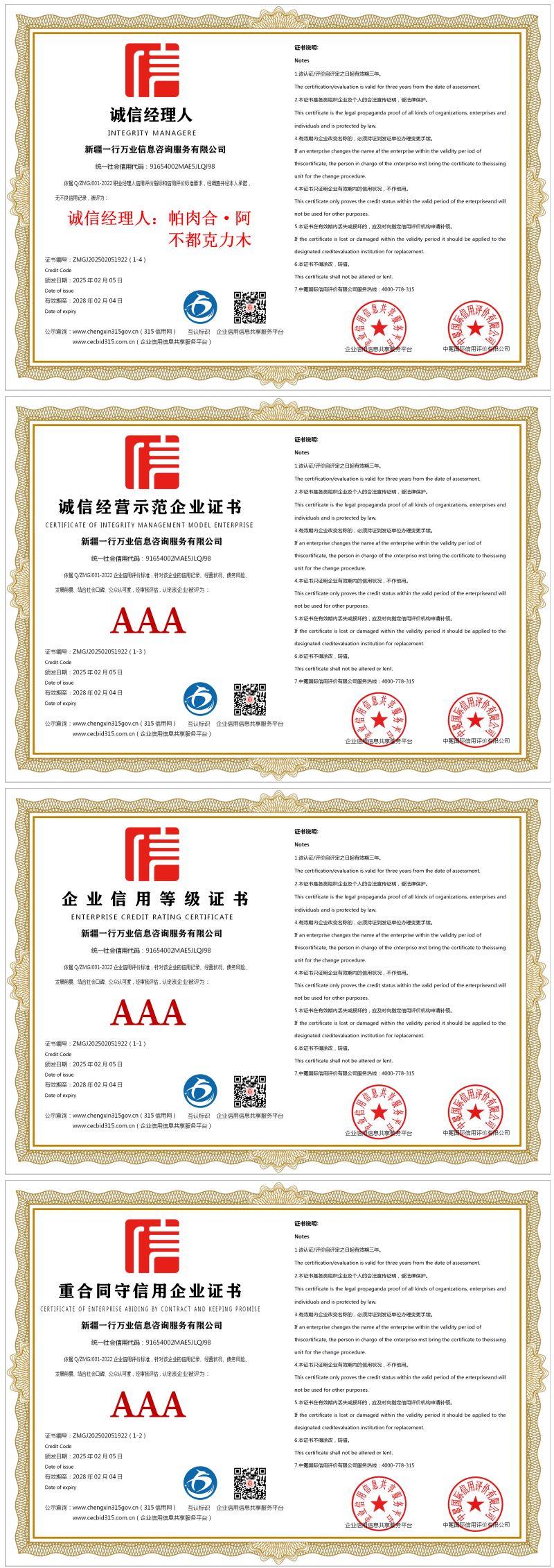 | 企业名称:新疆一行万业信息咨询服务有限公司 | 统一社会信用代码:91654002MAE5JLQJ98 |