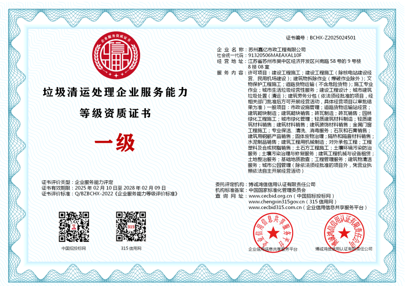 | 企业名称:苏州嘉亿市政工程有限公司 | 统一社会信用代码:91320506MAEAXAL10F |