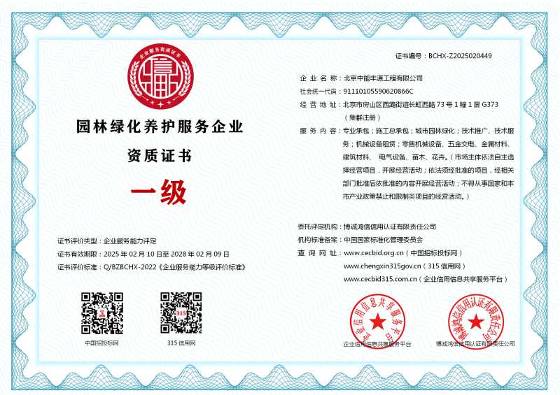 | 企业名称:北京中能丰源工程有限公司 | 统一社会信用代码:91110105590620866C |