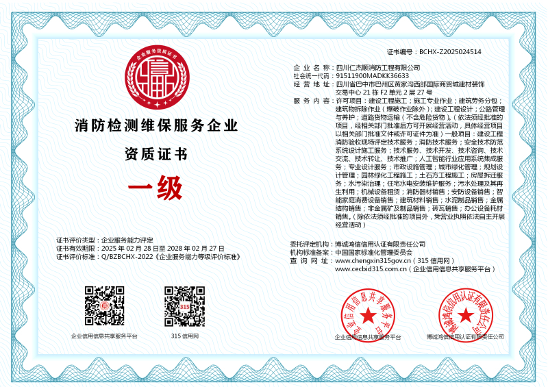 | 企业名称:四川仁杰顺消防工程有限公司 | 统一社会信用代码:91511900MADKK36633 |