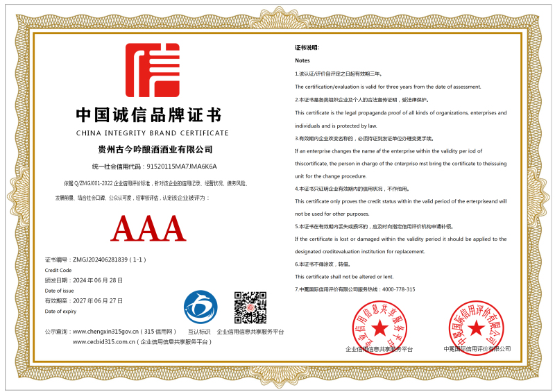 | 企业名称:贵州古今吟酿酒酒业有限公司 | 统一社会信用代码:91520115MA7JMA6K6A |