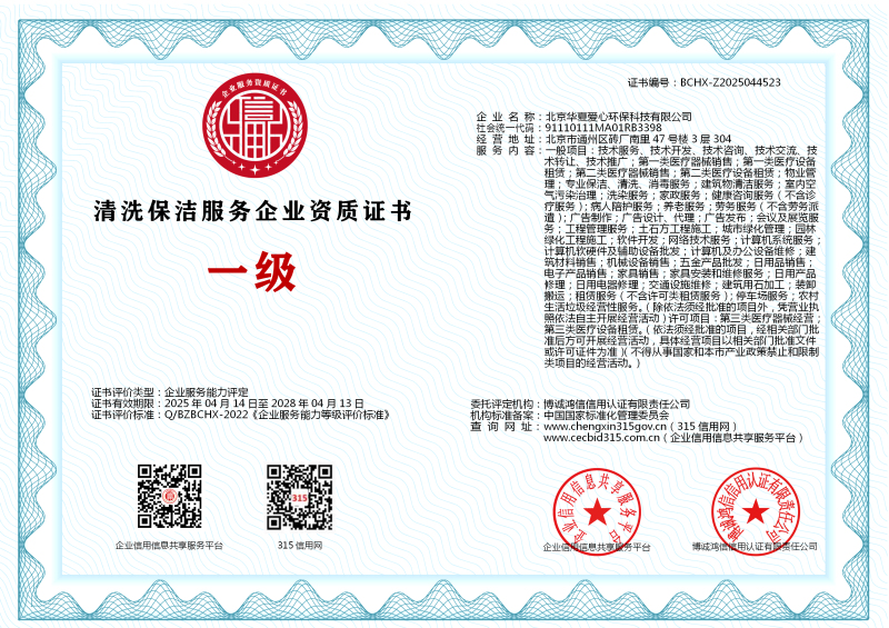 | 企业名称:北京华夏爱心环保科技有限公司 | 统一社会信用代码:91110111MA01RB3398 |