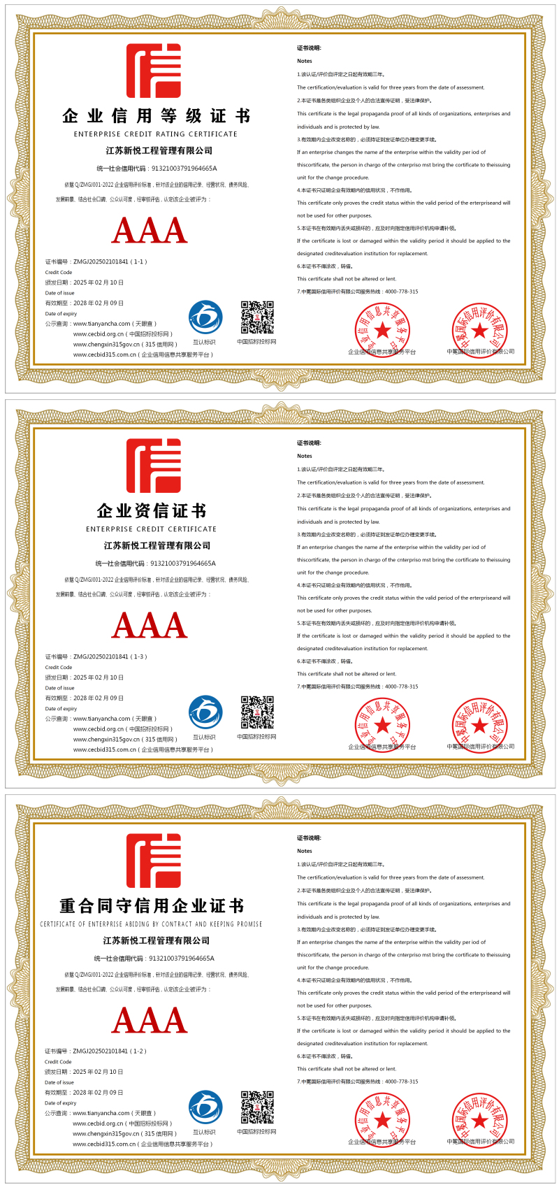 | 企业名称:江苏新悦工程管理有限公司 | 统一社会信用代码:91321003791964665A |