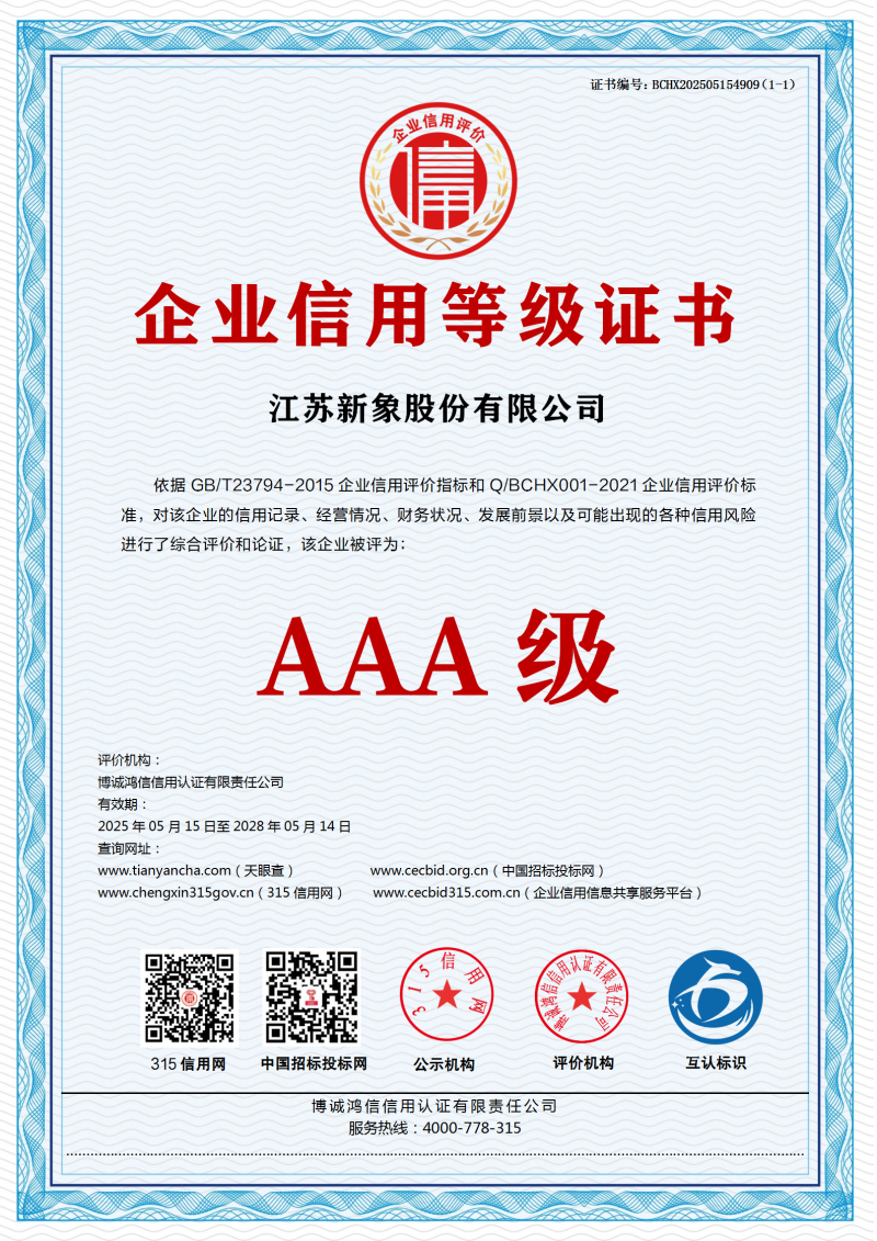 | 企业名称:江苏新象股份有限公司 | 统一社会信用代码:913206001347794009 |