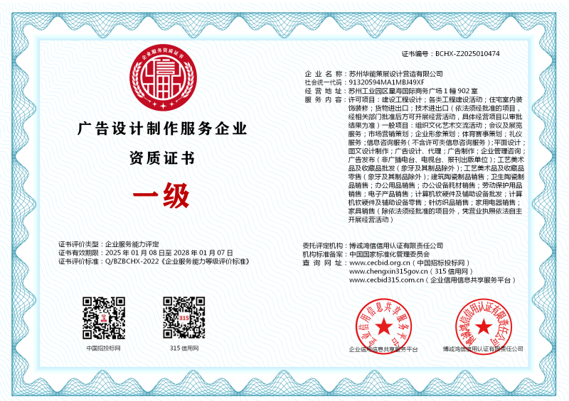 | 企业名称:苏州华能策展设计营造有限公司 | 统一社会信用代码:91320594MA1MBJ49XF |