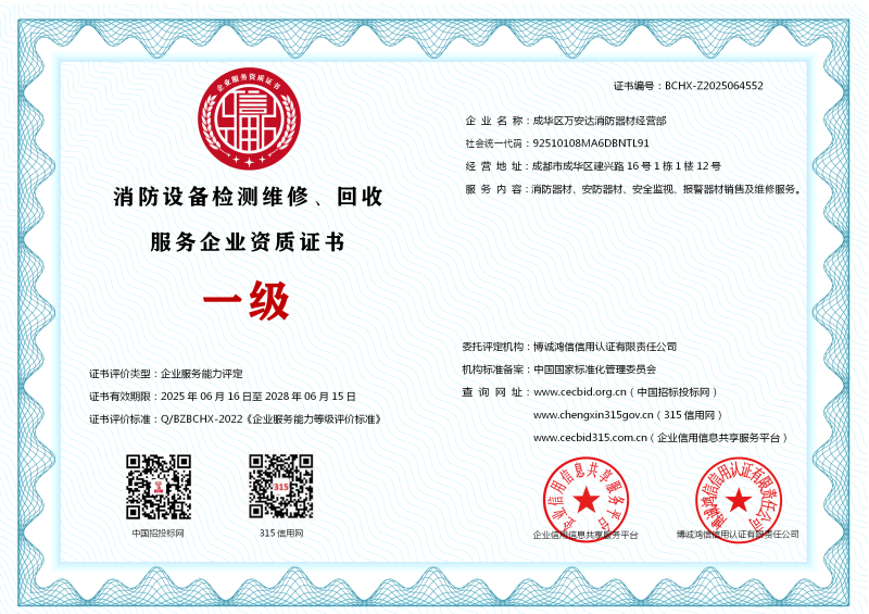 消防器材、安防器材、安全监视、报警器材销售及维修服务。