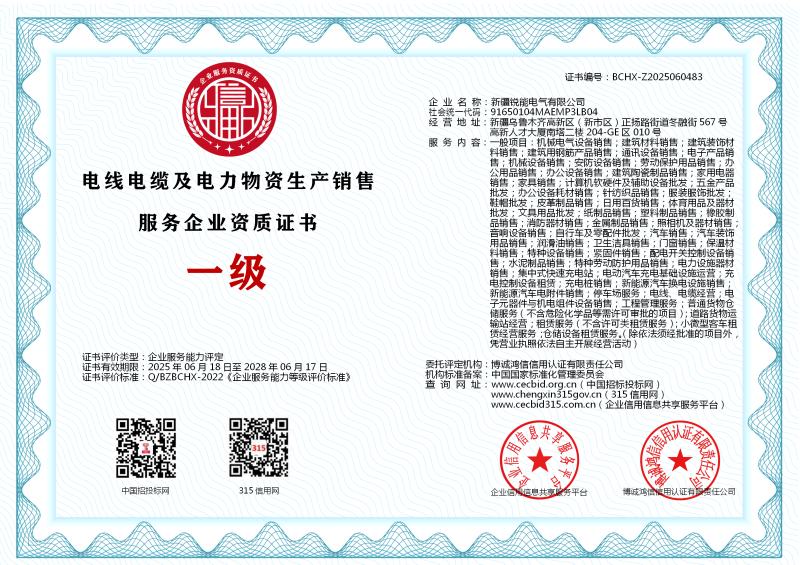 | 企业名称:新疆锐能电气有限公司 | 统一社会信用代码:91650104MAEMP3LB04 |