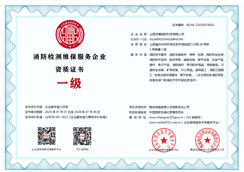 | 企业名称:山西卓樾消防科技有限公司 | 统一社会信用代码:91140902MA0LB4HX5W |