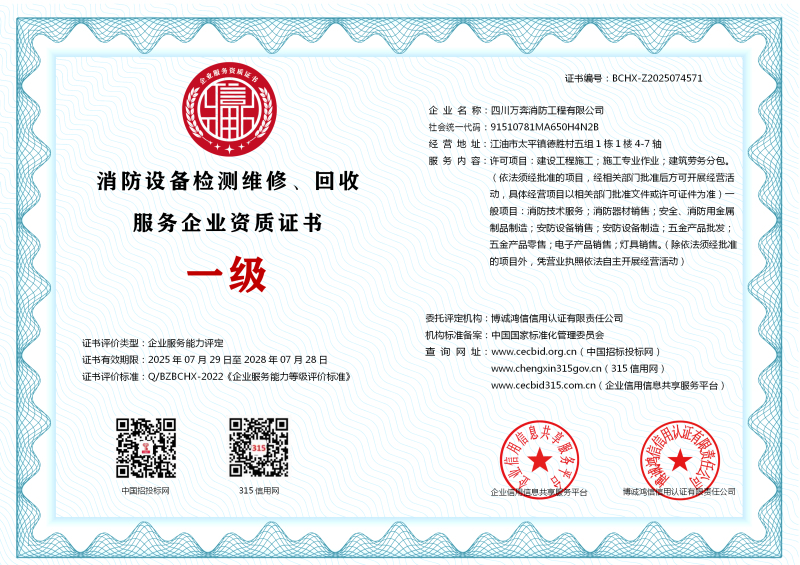 | 企业名称:四川万奔消防工程有限公司 | 统一社会信用代码:91510781MA650H4N2B |