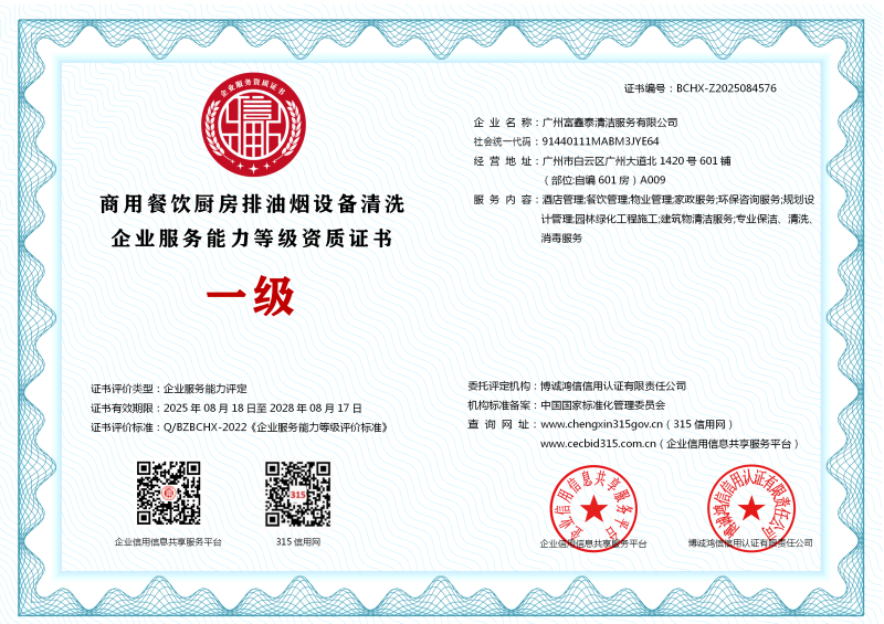 | 企业名称:广州富鑫泰清洁服务有限公司 | 统一社会信用代码:91440111MABM3JYE64 |