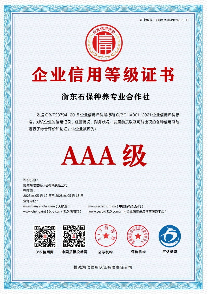 | 企业名称:衡东石保种养专业合作社 | 统一社会信用代码:93430424MADGA4Y58H |