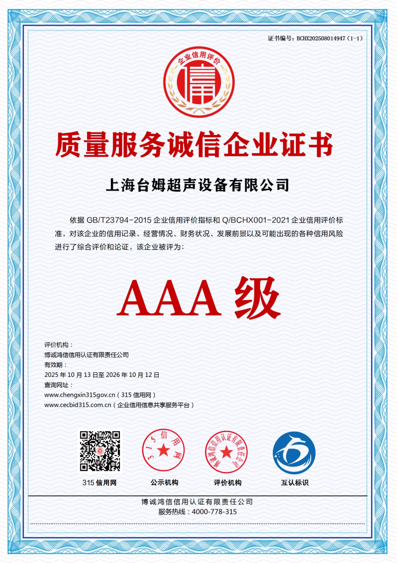 | 企业名称:上海台姆超声设备有限公司 | 统一社会信用代码:91310120770923012H |
